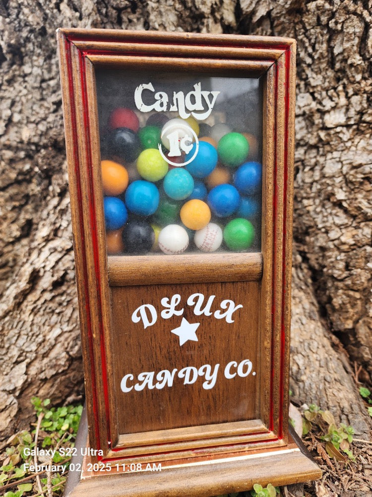 Custom Restored Vintage Candy Machine with custom copper edging and pinstriping.